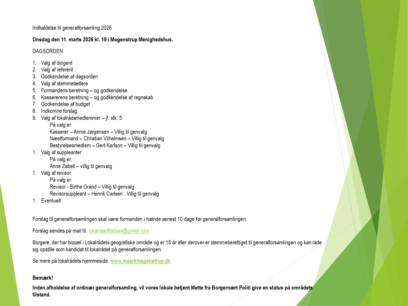 Dagsorden til Generalforsamling for Lokalråd Fladså